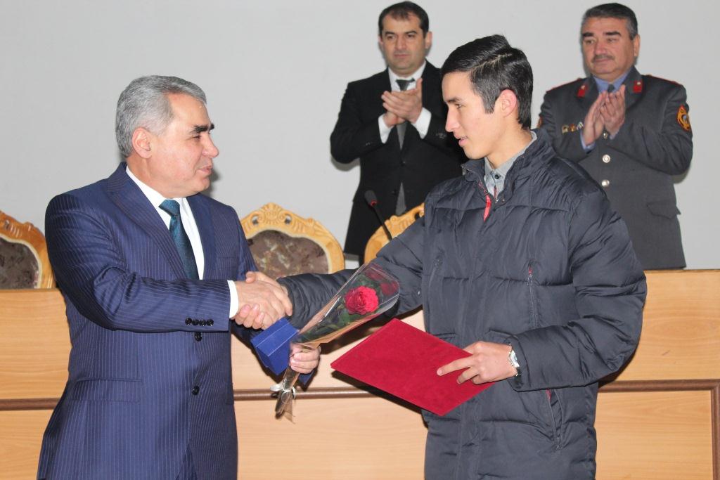 Глава столичной милиции генерал-майор Шариф Назарзода вручил молодым людям наручные часы и почетные грамоты УМВД.