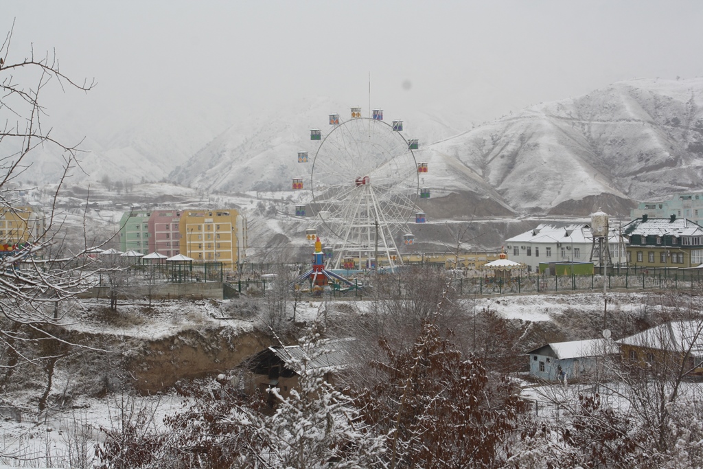 По пути в Рогун шел теплый снег, клубились вокруг туман и облака. Ехали мы в гору, плавно поднимаясь над уровнем моря. Дорога хоть без должного покрытия, но нет опасных ям, однако по ней очень скользко ехать во время осадков.