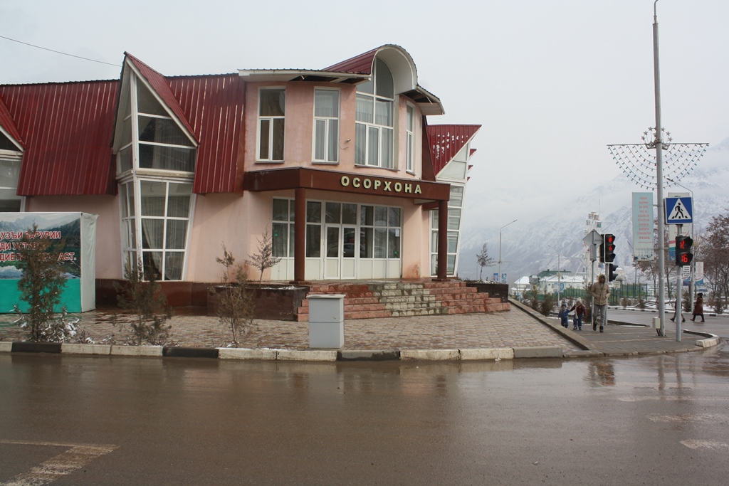 Представьте букву «Е», слева присоедините обратное ее изображение и получите схему основных проспектов города. На верхней террасе – неширокая улица, справа — типичные советские многоэтажки, слева – крутая гора. Говорят, если хочешь познакомиться с городом, нужно прежде всего сходить на базар. Или посидеть в чайхане. Поэтому мы поначалу и отправились на небольшой частный рынок. Но сегодня он пустует, а другого базара в Рогуне нет. Оттого дед Гуломали торгует яблоками на стоянке возле музея.