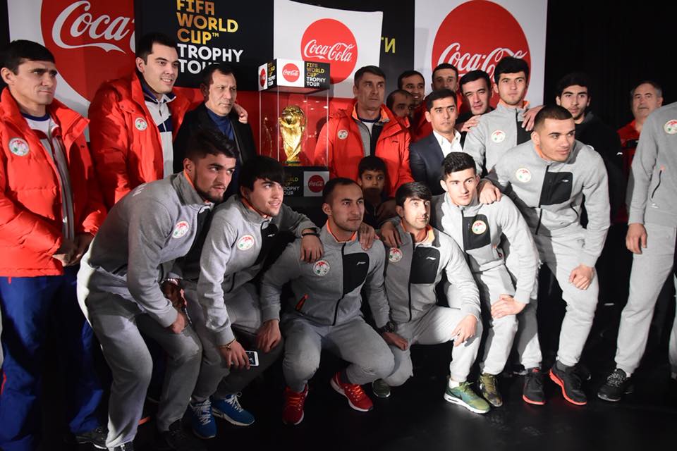 Сегодня, кстати, президент Федерации футбола Таджикистана Рустам Эмомали выразил признательность Международной федерации футбольных Ассоциаций (ФИФА) и компании «Coca Cola» за включения Таджикистана в маршрут Кубка чемпионата мира по футболу. "Прибытие в столицу Таджикистана Кубка чемпионата мира по футболу для нас радостное событие. Уверен, что это событие даст новый импульс популяризации футбола в стране. Выражаю признательность организаторам, компании «Coca Cola» совместно с ФИФА, за включение Душанбе в маршрут Тура Кубка чемпионата мира по футболу", — сказал он.