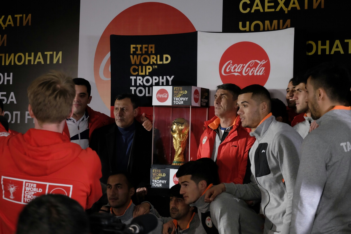 Сегодня, кстати, президент Федерации футбола Таджикистана Рустам Эмомали выразил признательность Международной федерации футбольных Ассоциаций (ФИФА) и компании «Coca Cola» за включения Таджикистана в маршрут Кубка чемпионата мира по футболу. "Прибытие в столицу Таджикистана Кубка чемпионата мира по футболу для нас радостное событие. Уверен, что это событие даст новый импульс популяризации футбола в стране. Выражаю признательность организаторам, компании «Coca Cola» совместно с ФИФА, за включение Душанбе в маршрут Тура Кубка чемпионата мира по футболу", — сказал он.