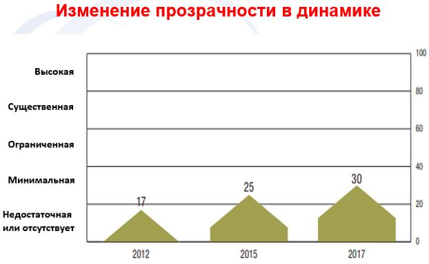 Отметим, что уровень минимальной открытости характеризуется 40 баллами. Следовательно, Таджикистан за 5 лет переступил порог недостаточной открытости и сейчас находится в ситуации минимальной открытости бюджета.
