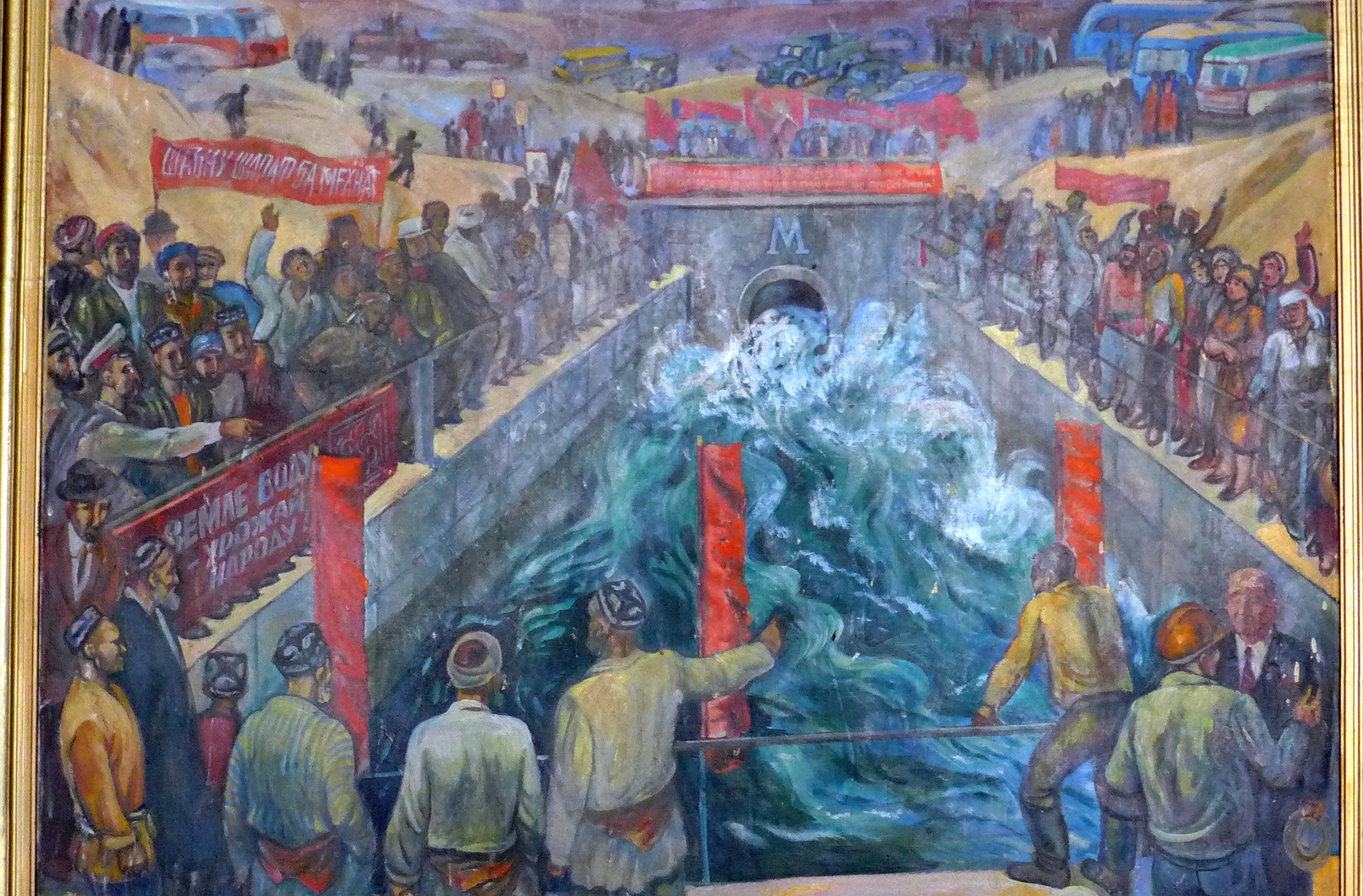 Работа тогда была проведена огромная по своему масштабу. На строительстве тоннеля и канала работало 120 экскаваторов, свыше 170 бульдозеров и скреперов, более 700 автомашин и много других механизмов. Сегодня в летний период, когда наиболее остро стоит вопрос подачи поливной воды, гидротехнический тоннель способен пропустить 70 кубических метров воды в секунду. Когда вода выходит из тоннеля, она попадает в магистральный канал. В конце канала вододелитель, состоящий из трех отводов-шлюзов. Каждый из них оборудован металлическим затвором. Вода подается в два отводных канала. Один, протяженностью 34 километра, проходит по правой стороне Яванской долины. Другой, длиной 79,5 км, — по левой.