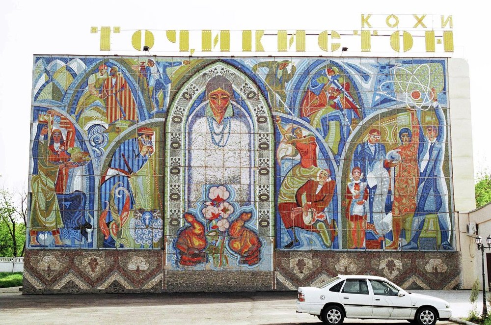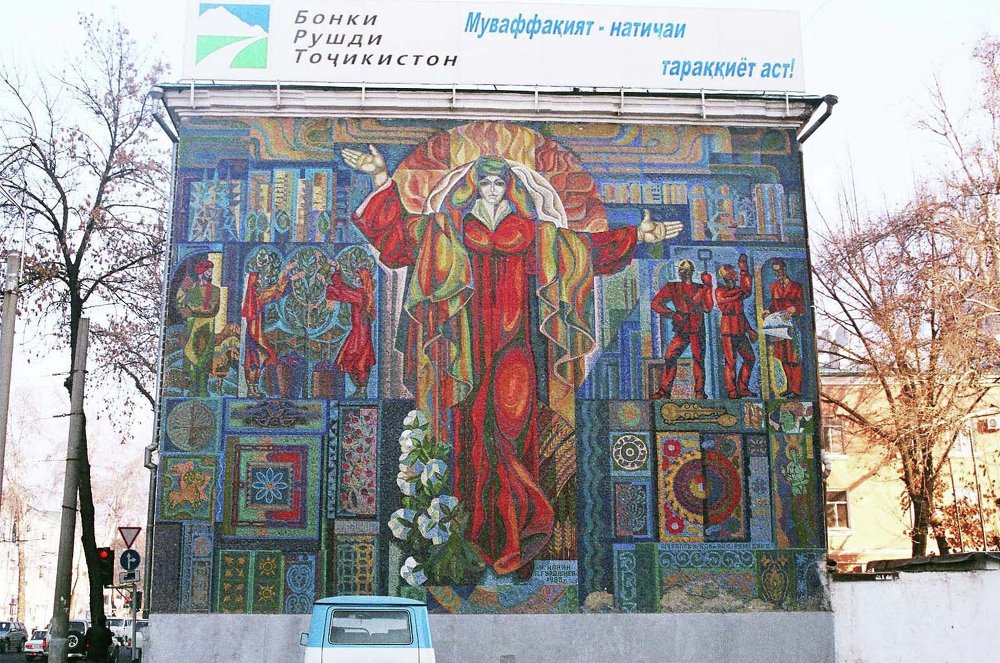 В советском Таджикистане в 70-80 годы прошлого столетия был бум на мозаики, художникам дали полную волю и те с удовольствием использовали всю фантазию: мозаичные панно украшали не только фасады административных зданий, но и жилых домов, детских садов и школ. Сегодня многие из них в Душанбе уже снесены.