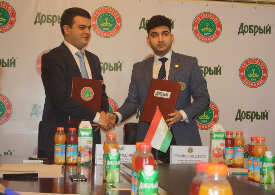 Чемпион Таджикистана по футболу – команда «Истиклол» сегодня заключила договор о партнерстве с компанией «Фаиза», которая является официальным дистрибьютором бренда «Добрый сок» в Таджикистане с 1998 года.