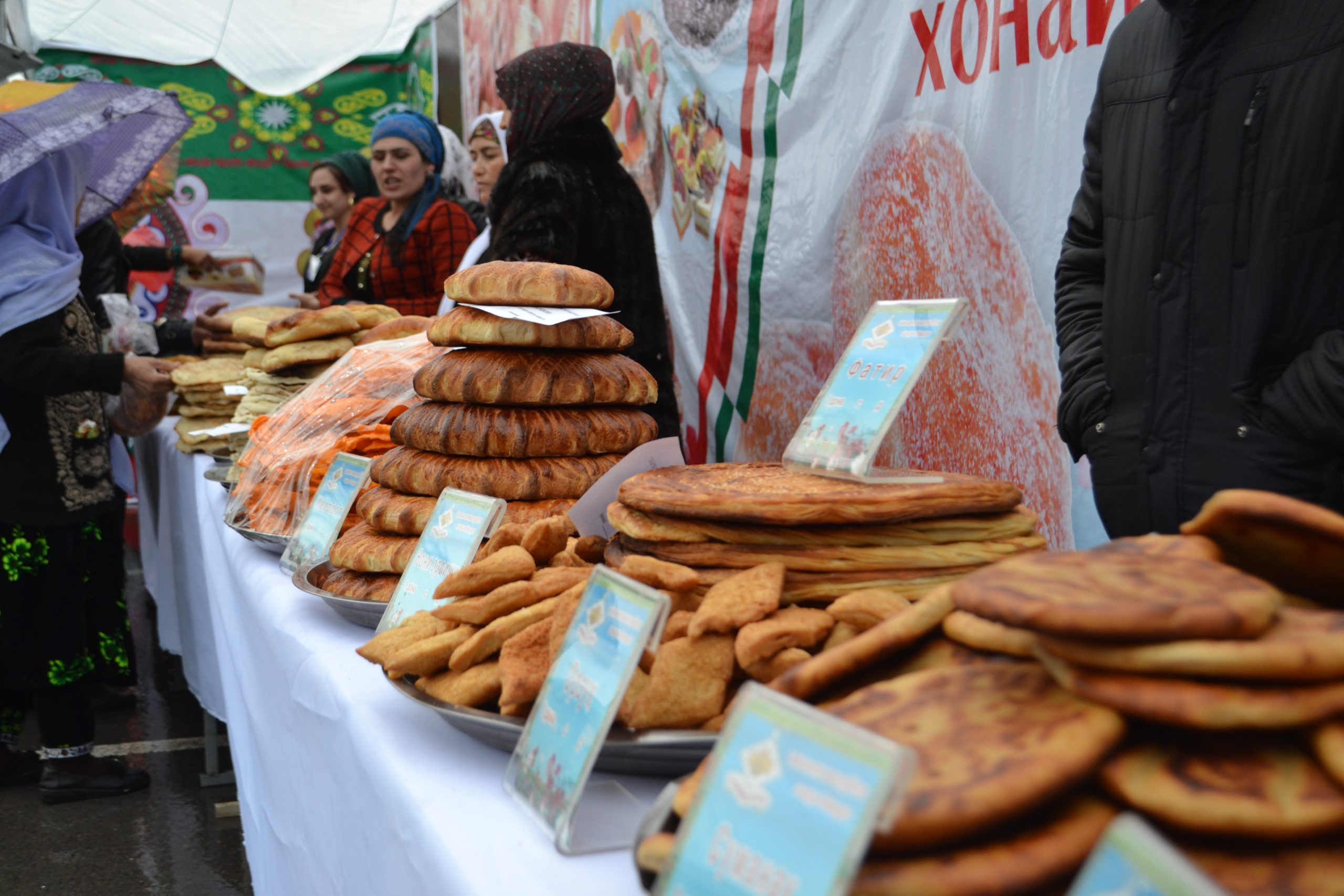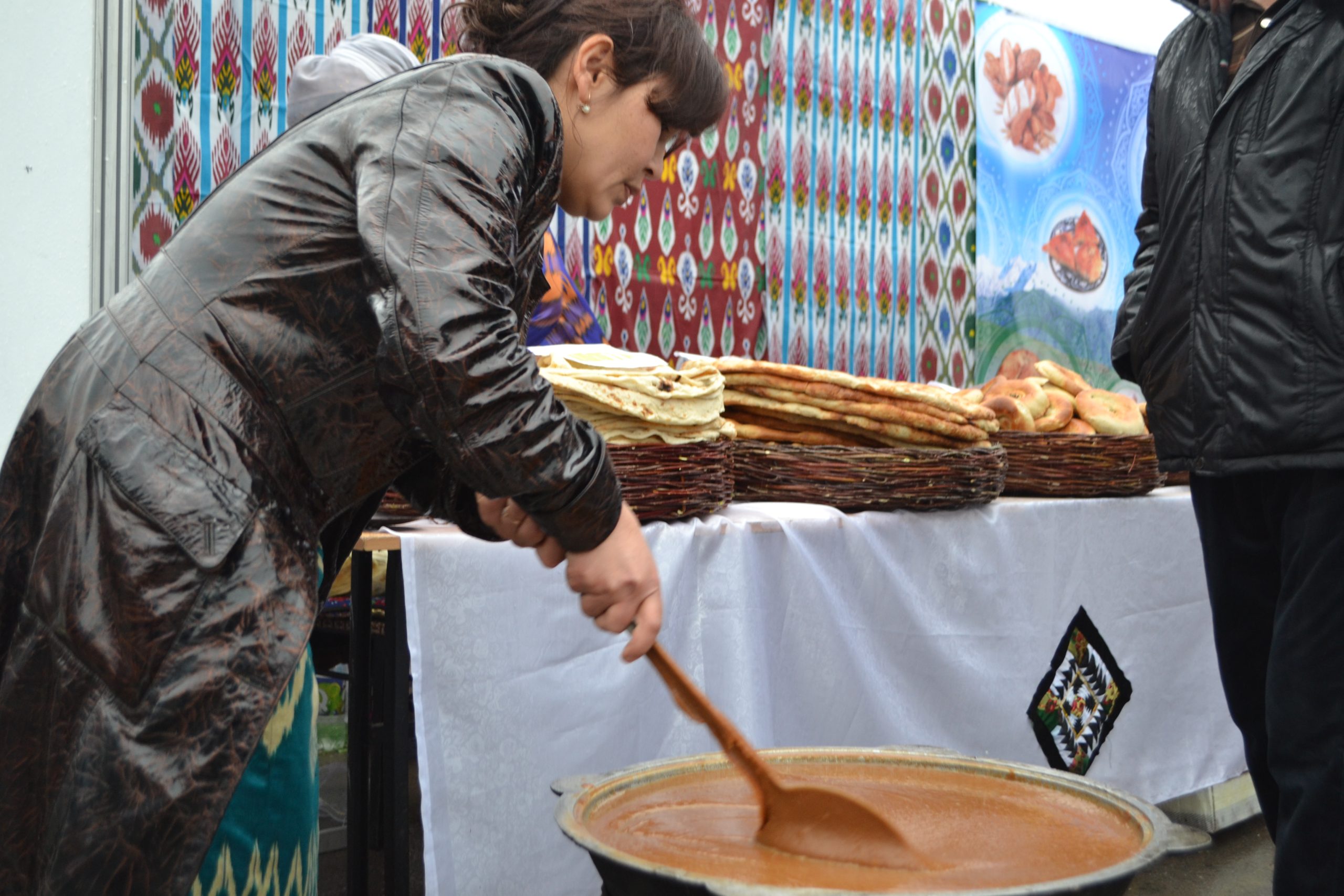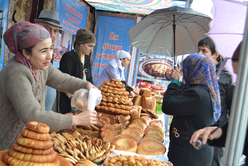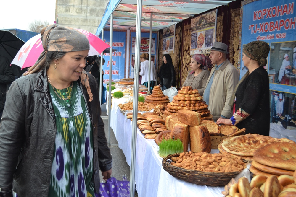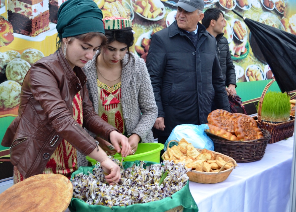 Несмотря на дождливую погоду, десятки жителей Душанбе посетили фестиваль, где были выставлены различные виды сладостей и национальных лепешек — орзуки, чагалдаки, халва, калама, кульчи, фатир, чапоти, ну и традиционный суманак, который варят на Навруз.