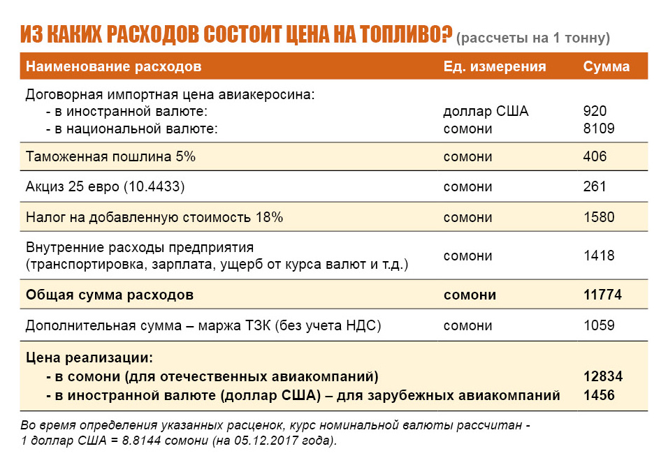 По его словам, конечная стоимость авиатоплива устанавливается на границе Таджикистана после выплаты всех налогов, в том числе, акцизных.