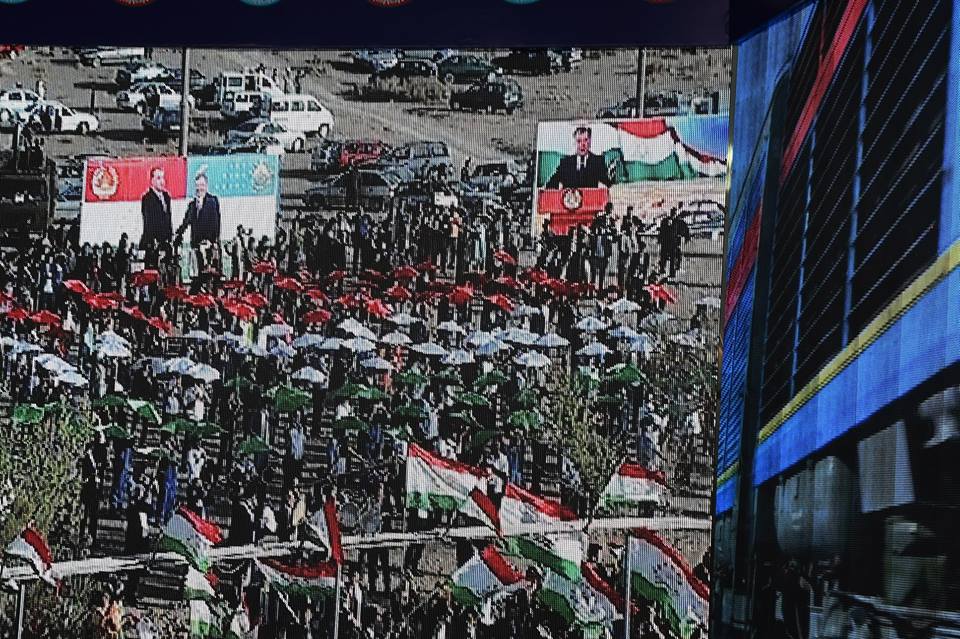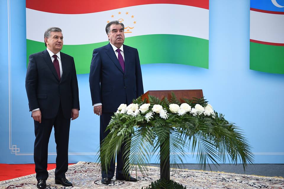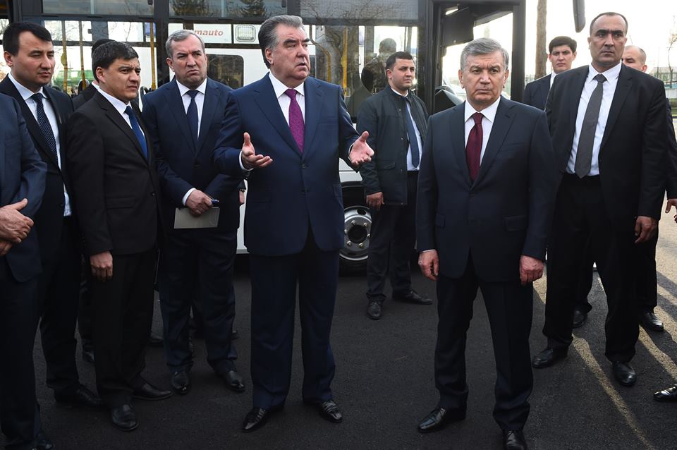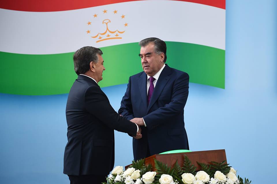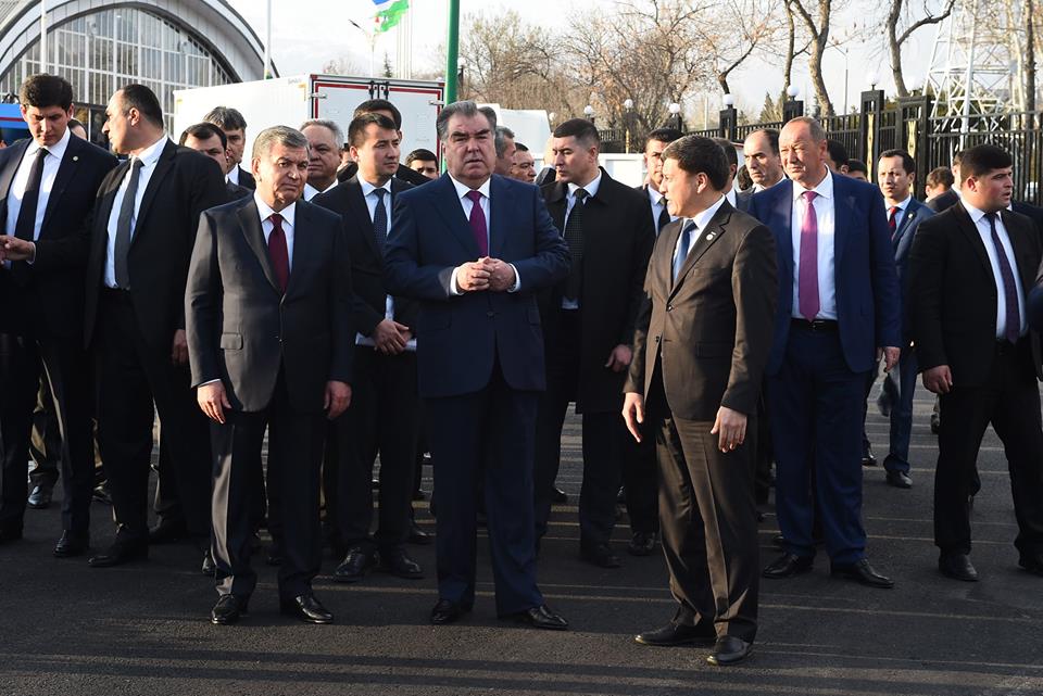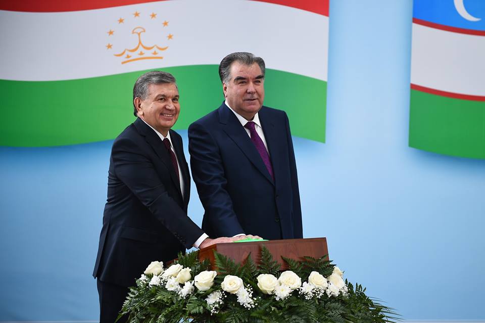 Здесь же Эмомали Рахмон и Шавкат Мирзиёев с нажатием на символическую кнопку дали старт работе международного железнодорожного перегона “Галаба-Амузанг”.