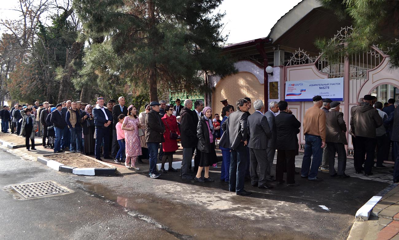 Выборы президента России в Таджикистане проходят на шести избирательных участках. В Душанбе, Худжанде, Курган-Тюбе, а также на военно-космическом объекте "Окно" (город Нурек).