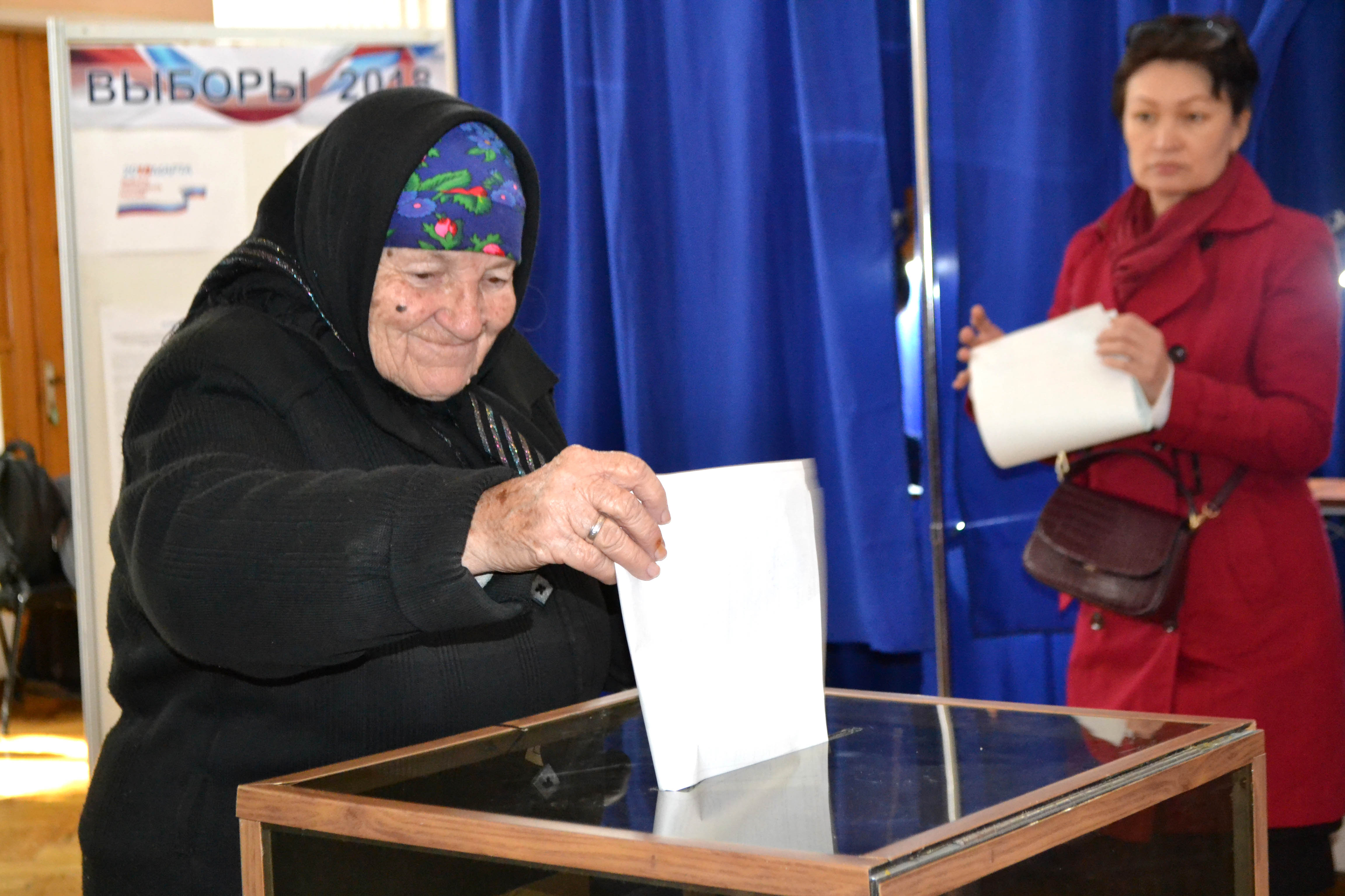 — Ага, я в церковь сбегала, за Путина свечку поставила, и вот теперь пришла за него голосовать, — общались между собой избиратели.