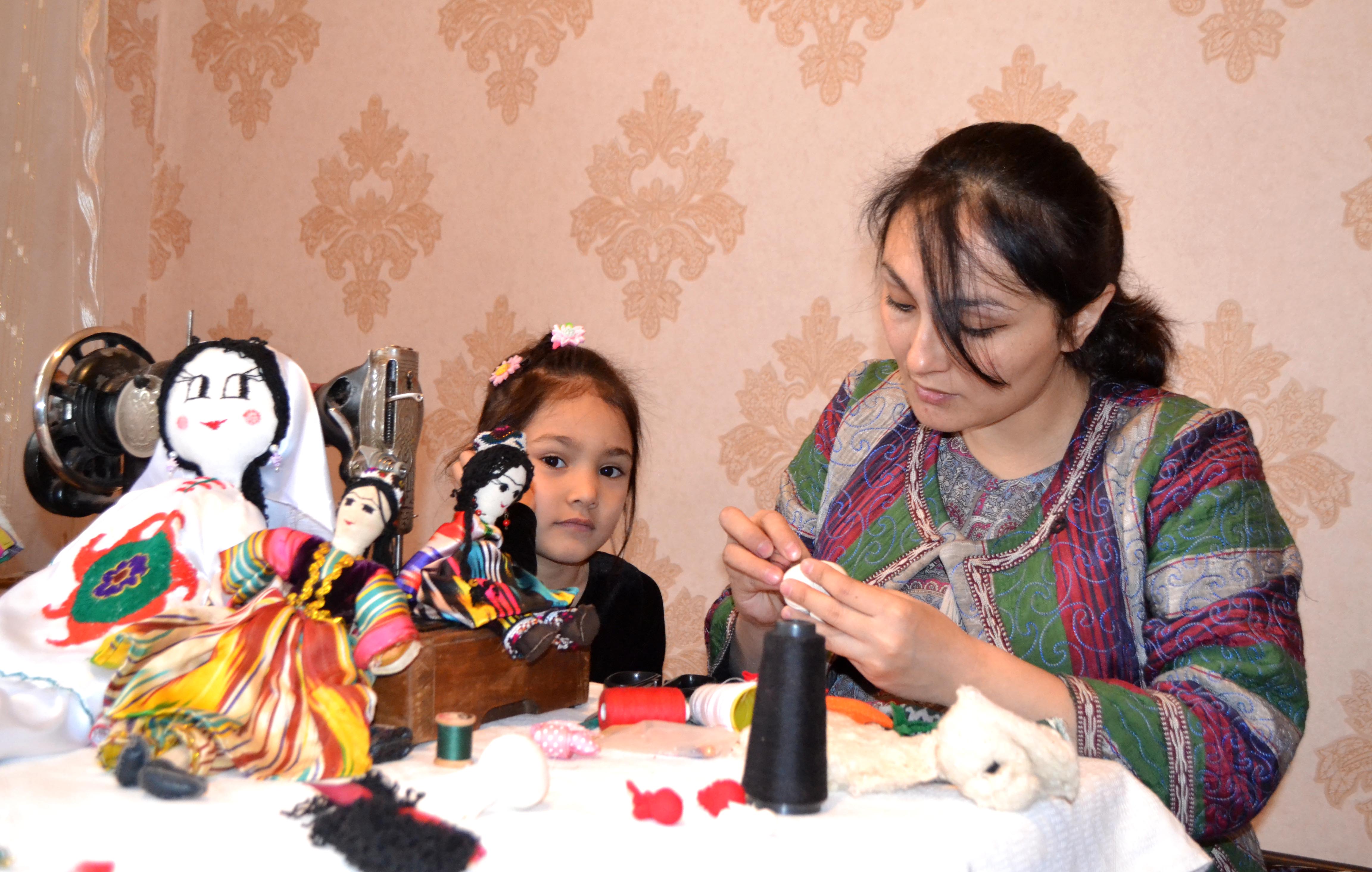 — В 90-е годы, в годы гражданской войны, когда нам с сестренкой было по 8-10 лет, и мы мечтали играть в куклы, а тогда игрушек для детей было не достать, мама решила сделать нам подарок. Ведь издавна кукла была не только игрушкой, но и оберегом для ребенка. Мама взялась за иголки с нитками и уже скоро у нас были самые красивые куклы, — рассказывает Наргис. — Так как мама дополнительно занималась музыкой с иностранцами, которые работали в международных организациях, однажды она пригласила их к нам в гости. И когда они увидели наши куклы, то попросили маму изготовить такие и для них, чтобы они увезли с собой национальные поделки. Вот так, маме потихоньку начали делать заказы.
