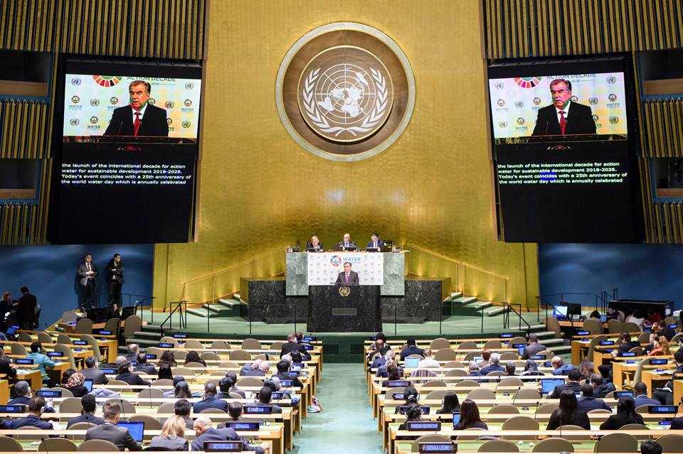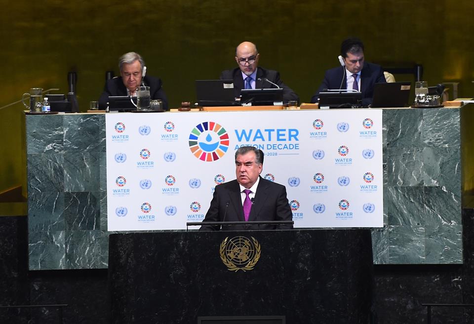 Президент Таджикистана Эмомали Рахмон 22 марта принял участие и выступил на мероприятии высокого уровня по случаю начала Международного десятилетия действий «Вода для устойчивого развития, 2018-2028 годы» в Нью-Йорке.