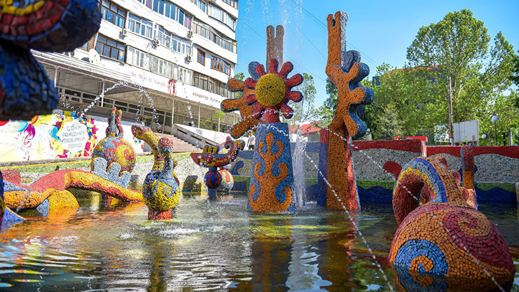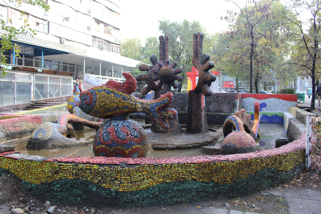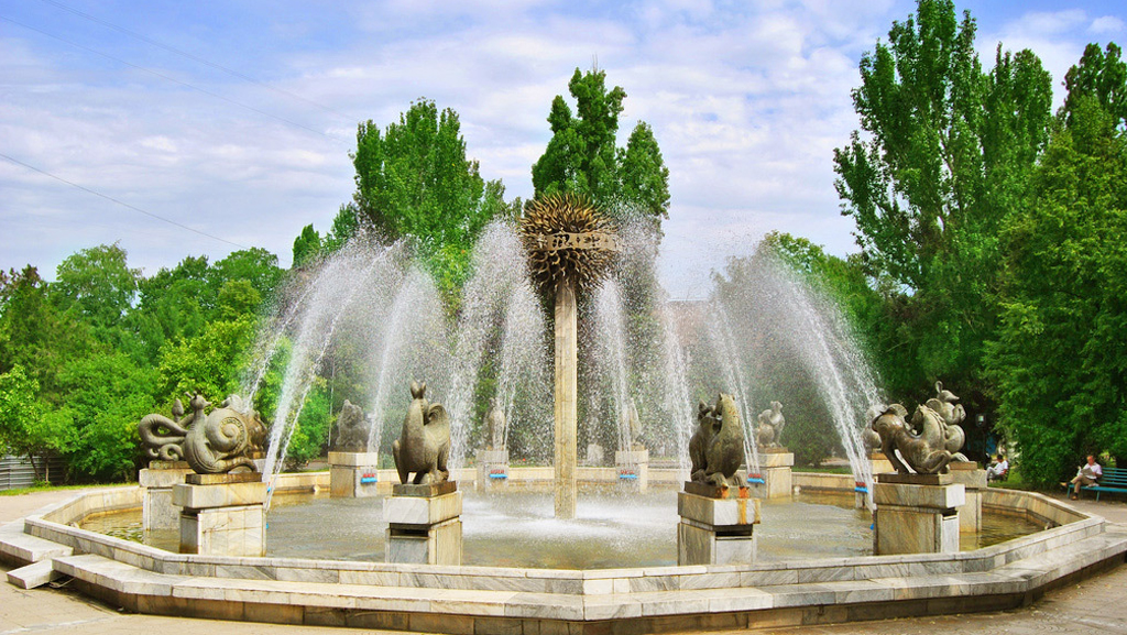 Пожалуй, самый известный в Бишкеке — фонтан на пересечении улиц Токтогула и Абдрахманова «Сказка», или, как его сейчас называют, «Солнечные рыбки». Фонтан был установлен 35 лет назад, 10 из которых он не включался, покрывался грязью, пылью и солями и постепенно разрушался. В прошлом году его отремонтировали, и сказочный облик фонтана был восстановлен.