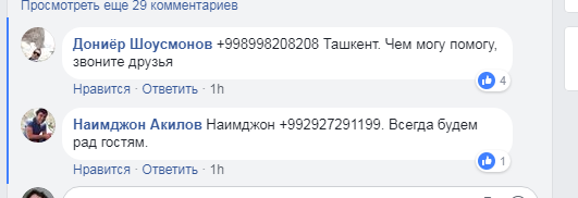 Некоторые пользователи из Узбекистана и вовсе оставляли свои номера телефонов и предлагали помощь таджикистанцам, те в ответ делали тоже самое.