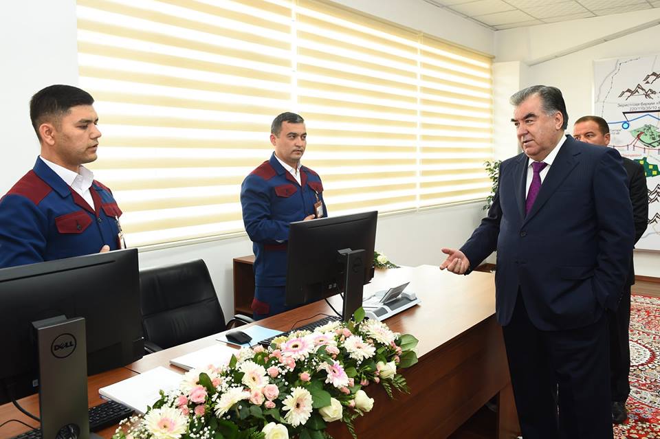 По прибытию в Пенджикент Эмомали Рахмон принял участие в церемонии сдачи в эксплуатацию ЛЭП 220 кВ «Айни-Рудаки» и реконструированной подстанции «Рудаки».