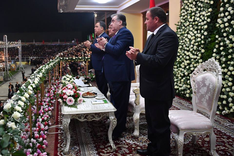 Выступая перед началом концерта, таджикский лидер отметил, что "нынешний Навруз для всего славного народа Таджикистана стал поистине историческим".