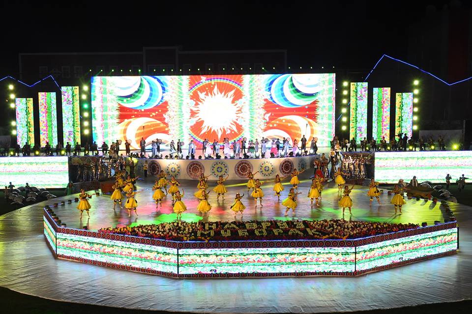 После торжесвтенной части на стадионе состоялось театрализованное представление, а после концерт: трибуны буквально пустились в пляс.