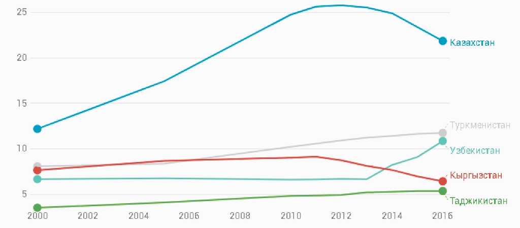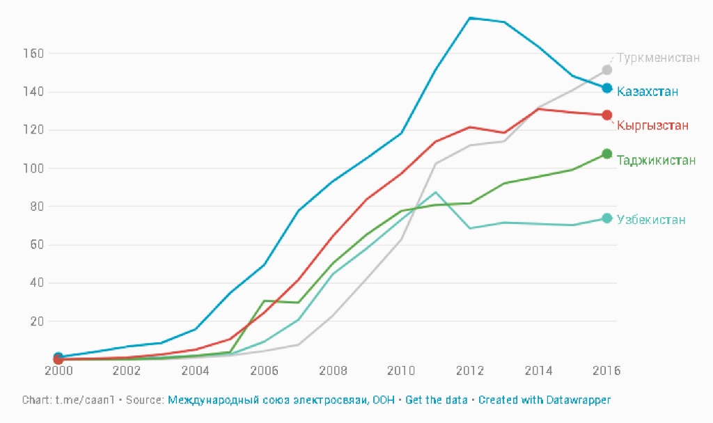 По данным Международного союза электросвязи, специализированного учреждения Организации Объединенных Наций, стационарные телефоны быстро теряют свою популярность в Казахстане и Кыргызстане. Снижение в Казахстане началось в 2012 году – тогда количество стационарных телефонов составляло более четыре миллиона трехсот тысяч абонентов. В 2016 году абонентов традиционного телефона в Казахстане стало меньше четырех миллионов. Тренд на снижение популярности стационарных телефонов в Кыргызстане началось еще раньше – пик в полумиллиона абонентов пришелся в 2011 году, а дальше население стало быстро отказываться от своих стационарных телефонов.