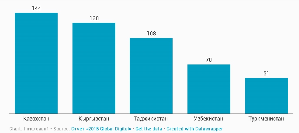 Согласно отчету «2018 Global Digital», подготовленному агентствами We Are Social и Hootsuite, почти 70% населения планеты имеют на руках мобильный телефон. За 2017 год на земле количество пользователей мобильного телефона выросло на четыре процента. В Казахстане – самой экономически продвинутой стране региона, за год было выдано почти миллион новых сим-карт. Впервые за последние годы в Казахстане количество абонентов сотовой связи пошло на повышение. Теперь, статистически, на каждых двух граждан этой страны приходится по три сим-карты – в стране насчитывается приблизительно 26.5 миллионов пользователей мобильного телефона. В Узбекистане – на четыре миллиона меньше.