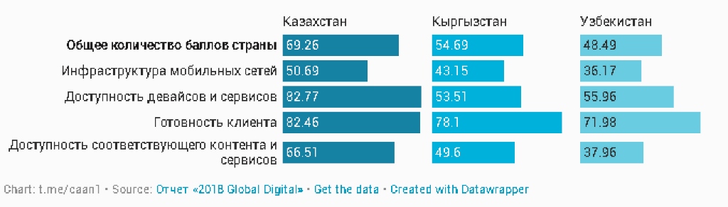 Доступность девайсов и сервисов для мобильного соединения самая высокая в Казахстане, что уже говорит о продвинутости этой страны. В опросе, проведённом Google еще в 2016 году, 53% ответили, что пользуются более чем одним девайсом.