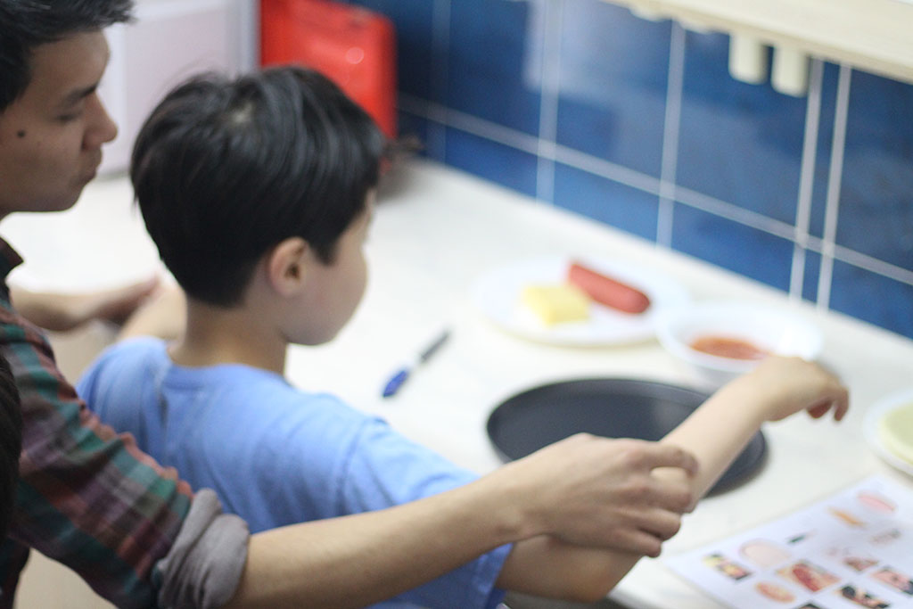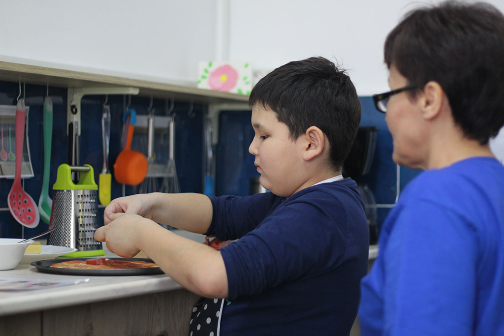Амир и Данияр – дети-аутисты. Мальчишки давно занимаются со специалистами. Они хорошо учатся в школе. Данияр отлично рисует, а Амир все схватывает на лету. Ребята уже запросто могут нарезать себе фруктовый или овощной салат, накрыть на стол, помыть посуду. Хотя пару месяцев назад для них это было невозможным. Сегодня мальчишки готовят пиццу.