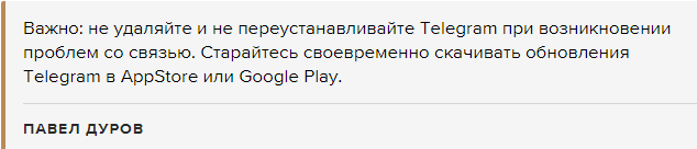 Он пообещал, что Telegram будет использовать встроенные методы обхода блокировок, которые не требуют дополнительных действий от пользователей. При этом он не гарантировал 100-процентную доступность сервиса без VPN. Также он предупредил, что в первые часы блокировки Telegram сторонние VPN/Proxy-сервисы могут оказаться перегружены и будут работать медленно.