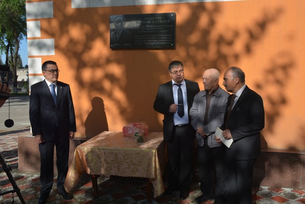 Торжественная церемония открытия мемориальной доски памяти первого иностранного почетного члена Академии наук Таджикистана, выдающегося казахстанского ученого Каныша Сатпаева, внесшего свой вклад в организацию деятельности таджикской Академии наук, геологической науки Средней Азии состоялась сегодня, 13 апреля в Институте геологии Академии наук РТ в Душанбе.