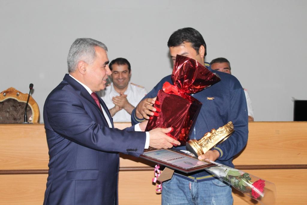 Шариф Назарзода, начальника УМВД по городу Душанбе, наградил 30-летнего жителя Душанбе за спасение женщины с двумя детьми от самоубийства.