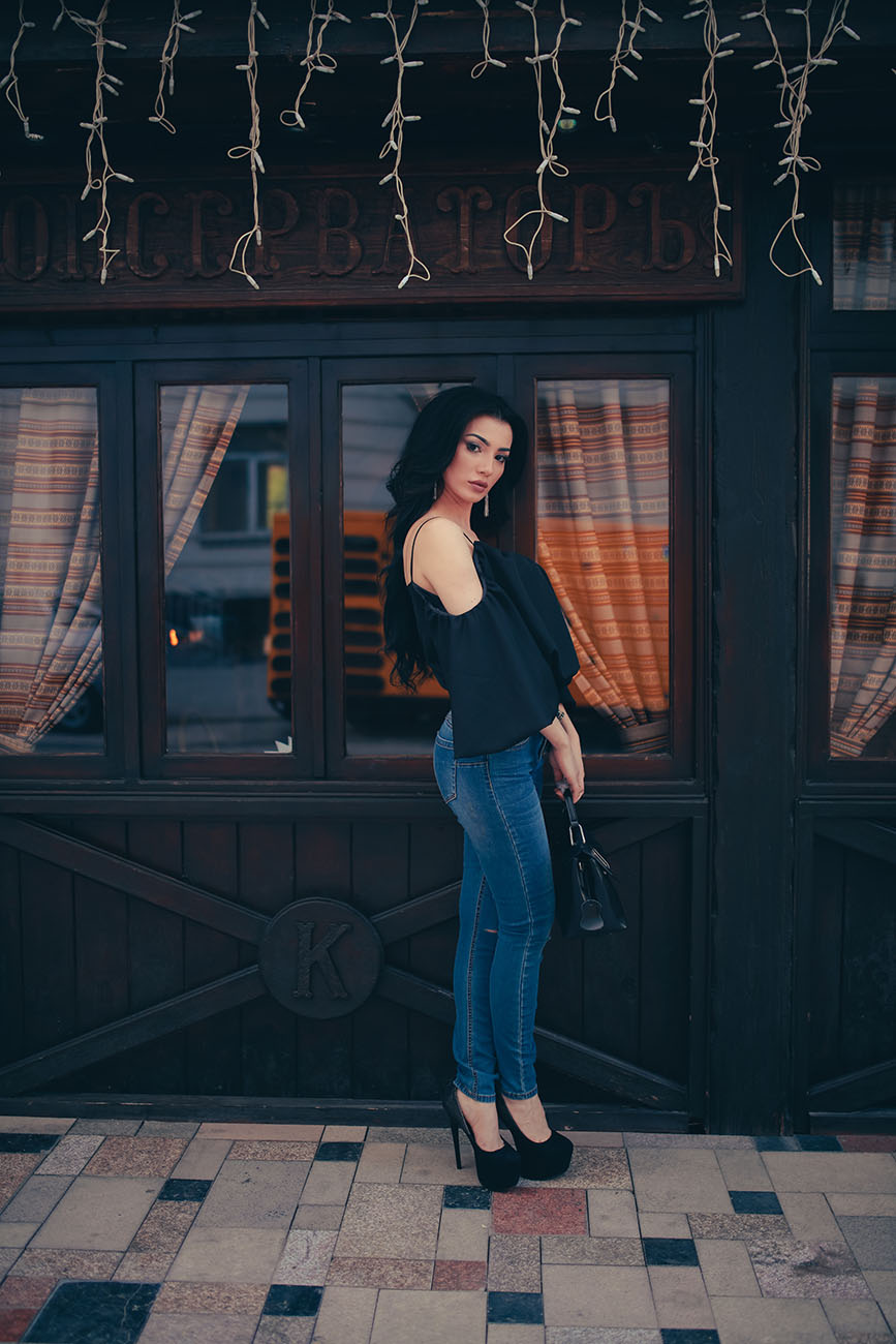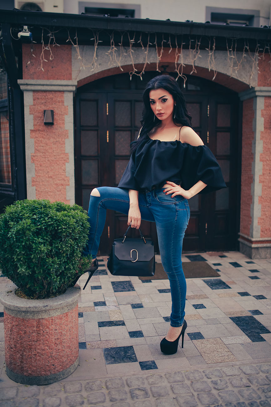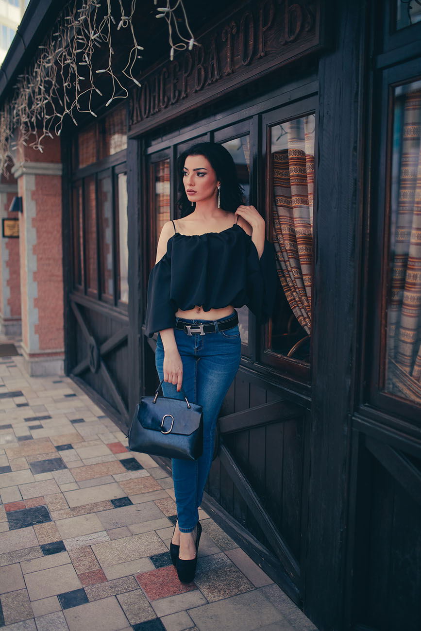 Вырез на одежде всегда привлекает внимание, и бывает трудно проявить чувство меры, чтобы не перейти тонкую грань между женственностью и сексуальностью. Излишне глубокие вырезы и декольте заменил давно забытый тренд – открытые плечи. Носится такая модель блузок фактически с любым гардеробом. Для создания повседневного образа в стиле casual стилисты предлагают носить облегающие джинсы-скинни лаконичного фасона.