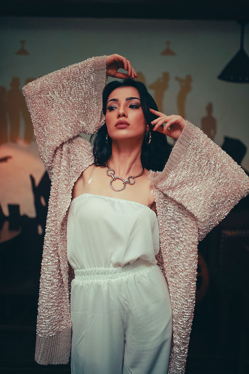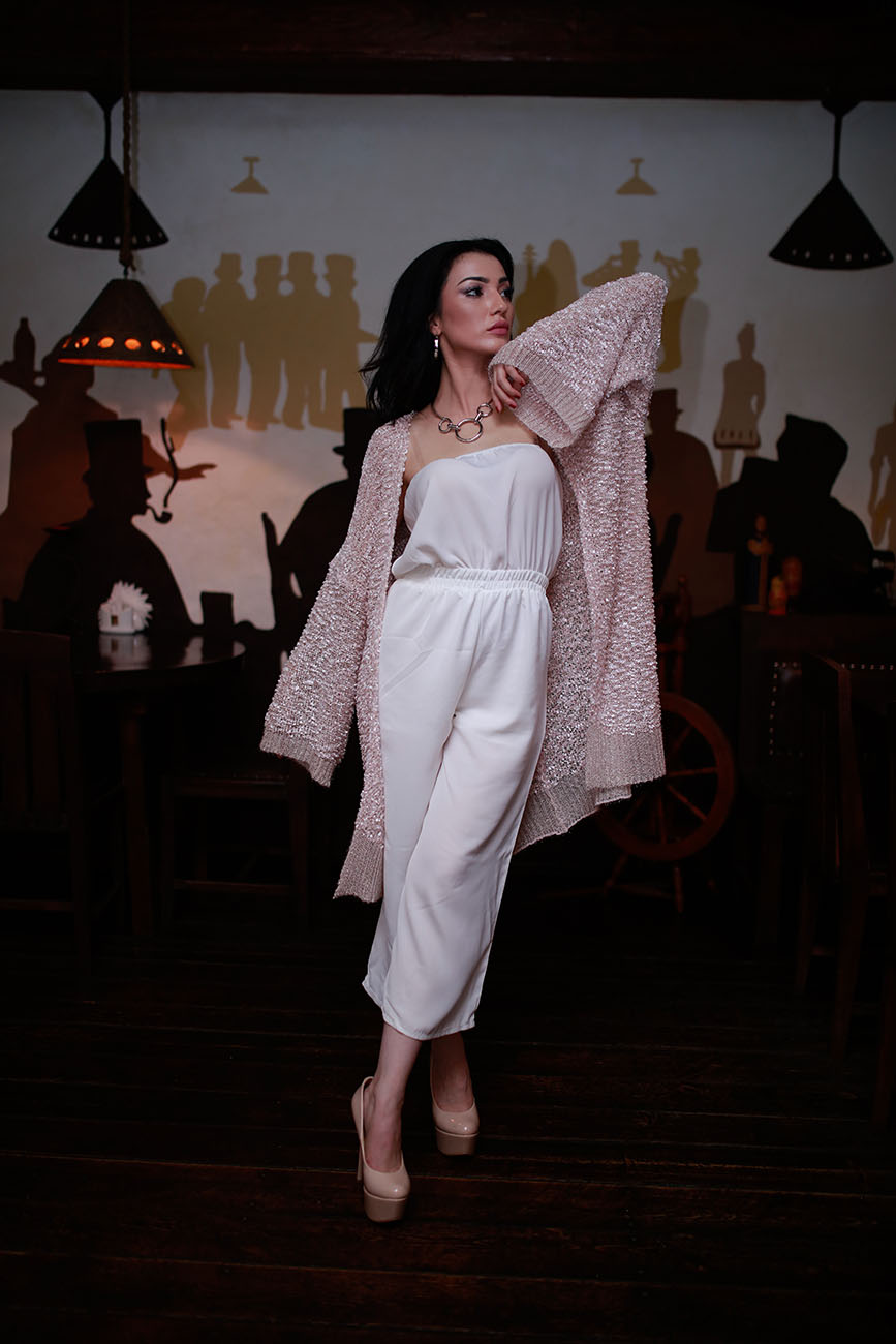 Стоимость: костюм-двоечка в белом и чёрном цвете – 420 сомони, кардиган в пудровом и розовом цвете – 530 сомони