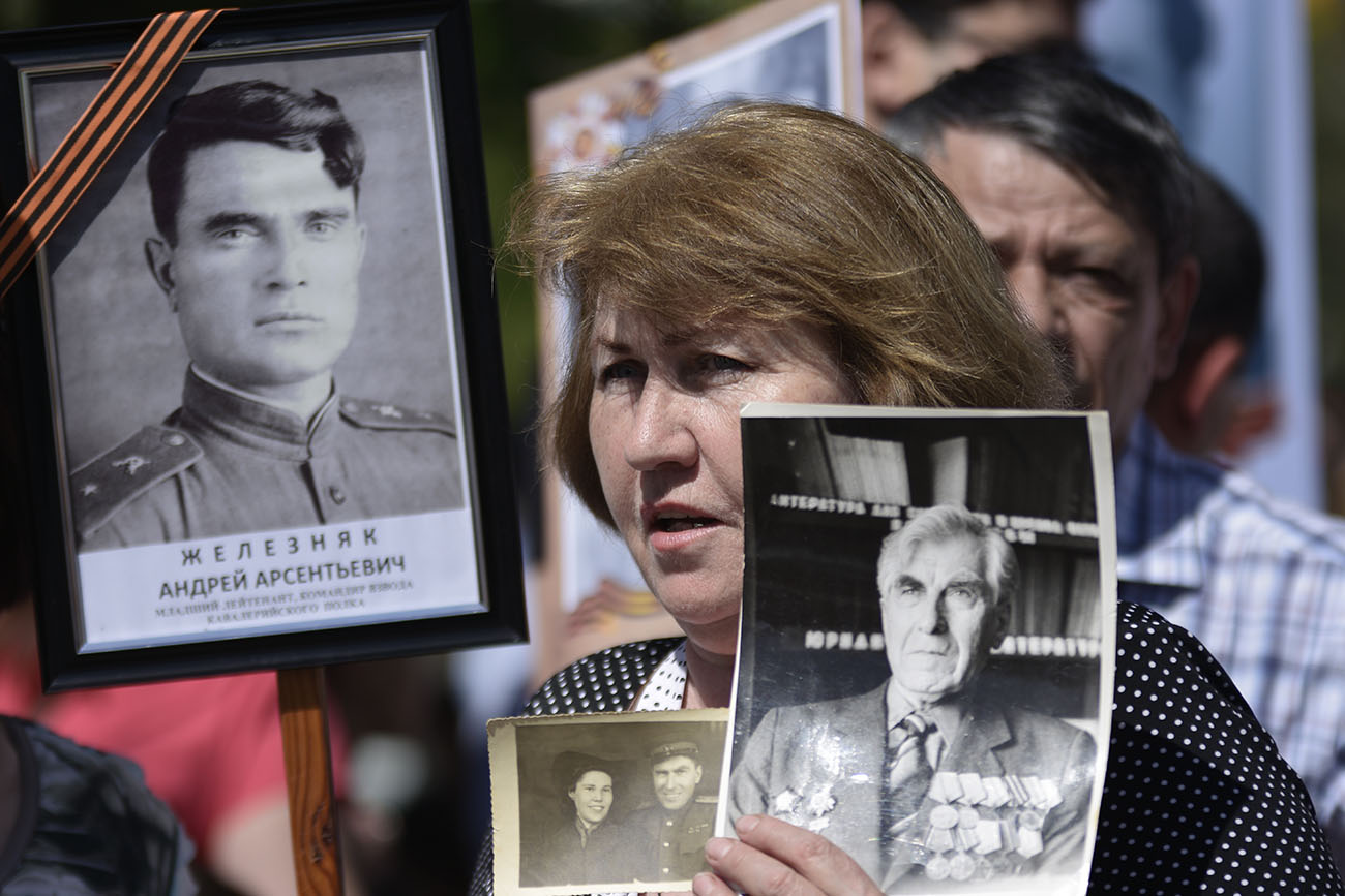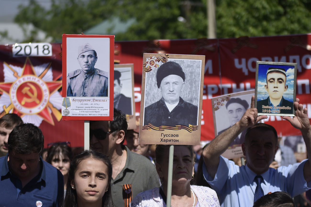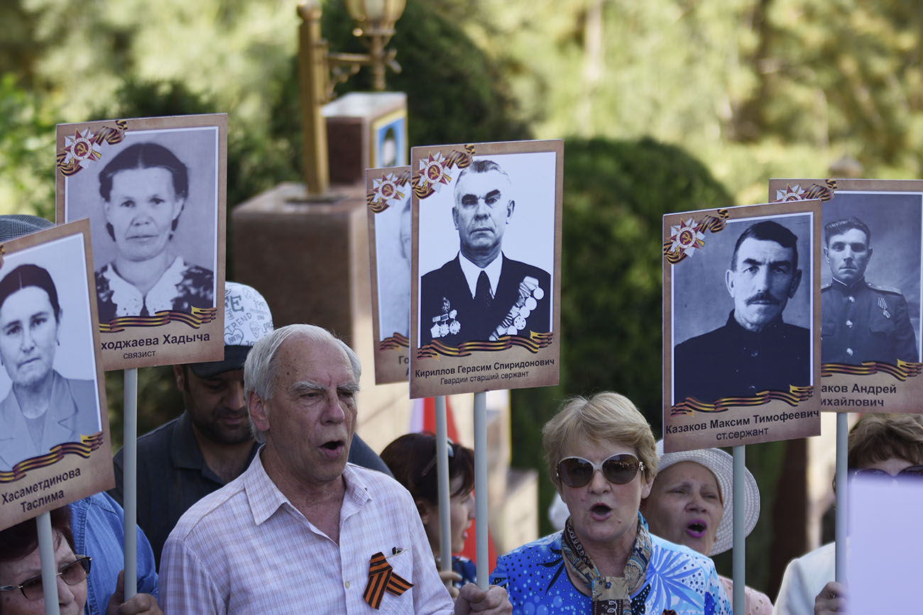 Не все пришедшие на марш люди смогли вовремя сделать рамки для фотографий своих предков, погибших в той войне, но просто фотокарточки были практически у 80 процентов присутствующих.