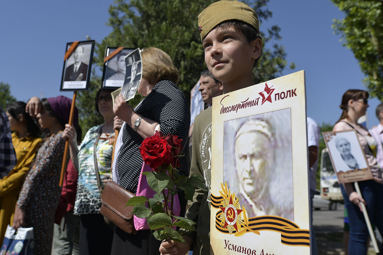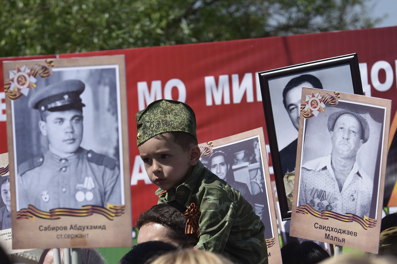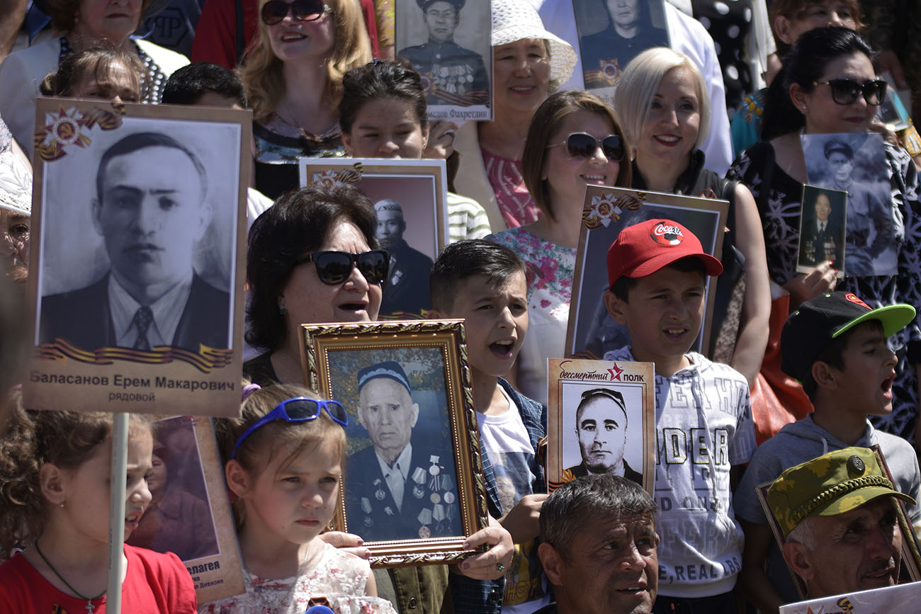 Не все пришедшие на марш люди смогли вовремя сделать рамки для фотографий своих предков, погибших в той войне, но просто фотокарточки были практически у 80 процентов присутствующих.