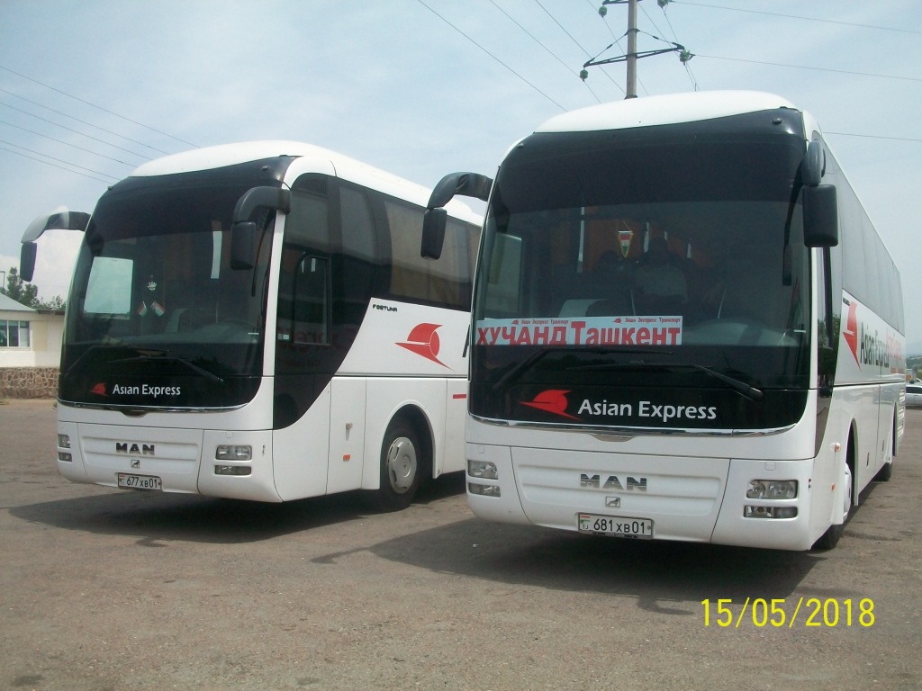 Сегодня ровно в полдень в Худжанд прибыл первый рейсовый автобус из Ташкента. Пассажиров первого презентационного рейса по маршруту Ташкент-Худжанд — представителей транспортных ведомств, руководителей туристических компаний и СМИ Узбекистана на автовокзале «Рохи абрешим» (Шелковый путь) под звуки доиры, с хлебом и солью встретили руководство области и города Худжанда, представители министерства транспорта Таджикистана, общественность города.