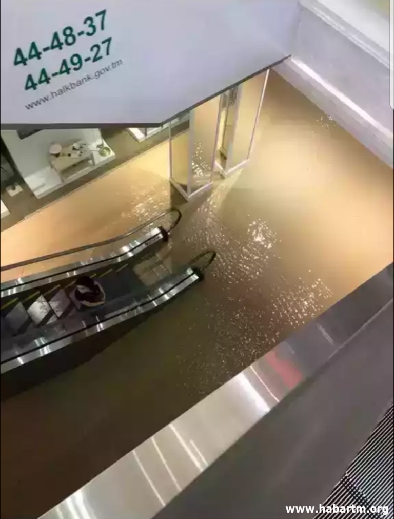 Весь первый этаж ТЦ, в котором расположены десятки магазинов, залило водой, передает агентство Альтернативные новости Туркменистана.