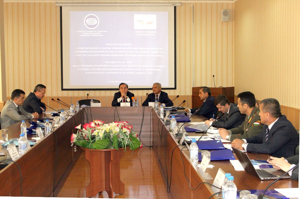 Вклад президентов РТ Эмомали Рахмона и РФ Владимира Путина в обеспечении безопасности и стабильности на южных границах СНГ обсудили сегодня в Центре стратегических исследований в Душанбе в рамках круглого стола. Мероприятие было организовано ЦСИ совместно с Общественным движением «Друзья России».