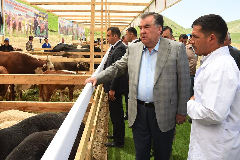 Эмомали Рахмон ознакомился с животноводческой выставкой. На выставке были представлены 70 голов крупного рогатого скота, 400 голов мелкого рогатого скота и около 50 голов лошадей. В рамках этого мероприятия, целью которого является показ производственного потенциала и возможностей животноводства, хозяйственники ряда городов и районов Кулябской зоны Хатлонской области представили своих породистых животных, большую часть которых составляют элитные и адаптированные к климату региона породы.