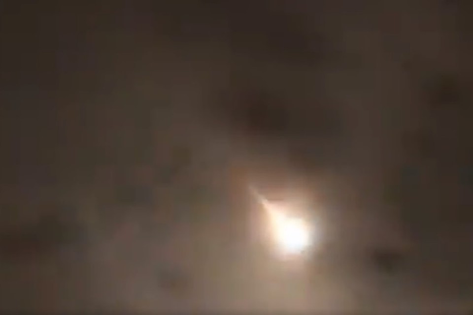 На кадров видно, как ночное небо освещает яркий свет, а затем светящийся шар падает вниз и тухнет.
