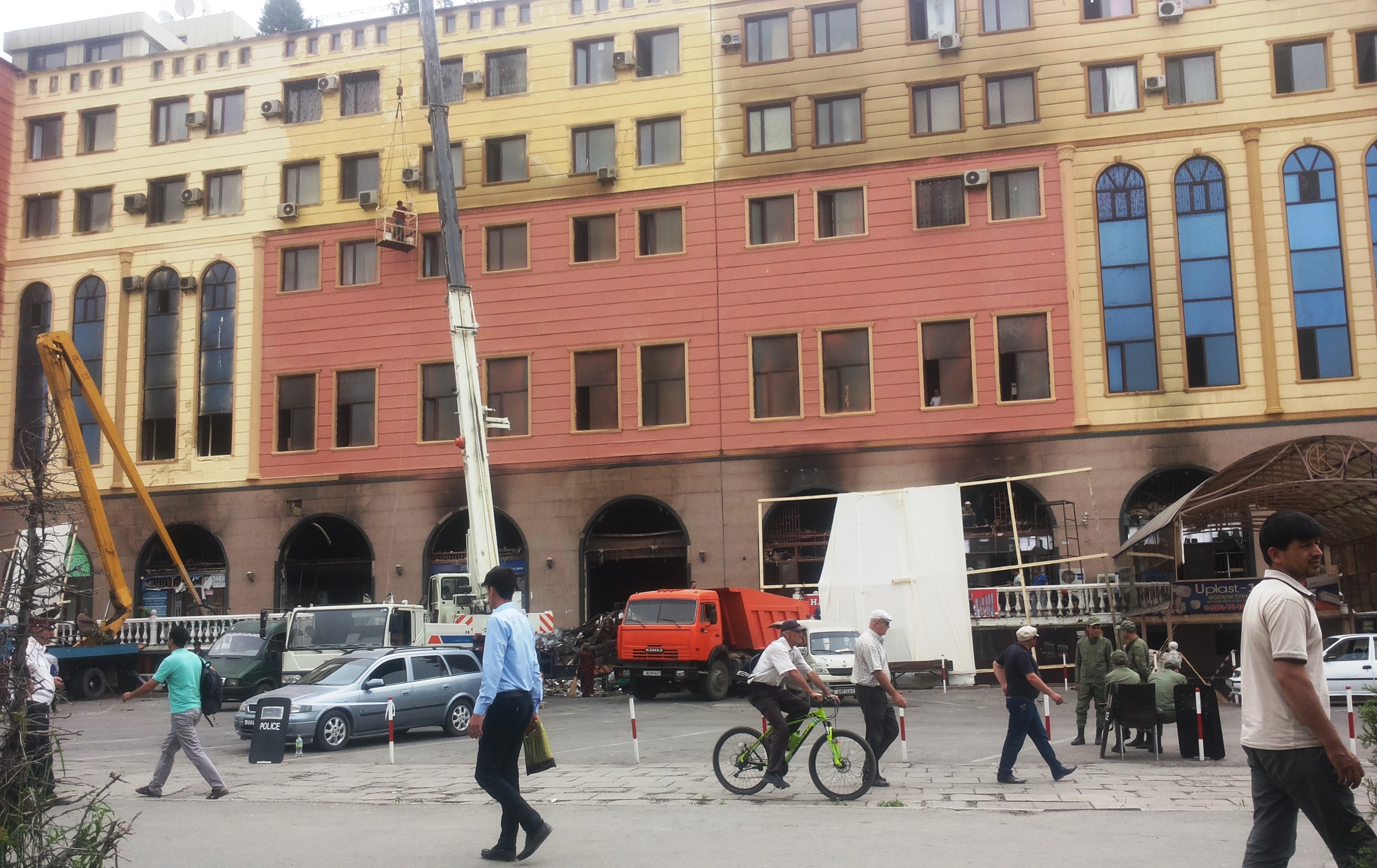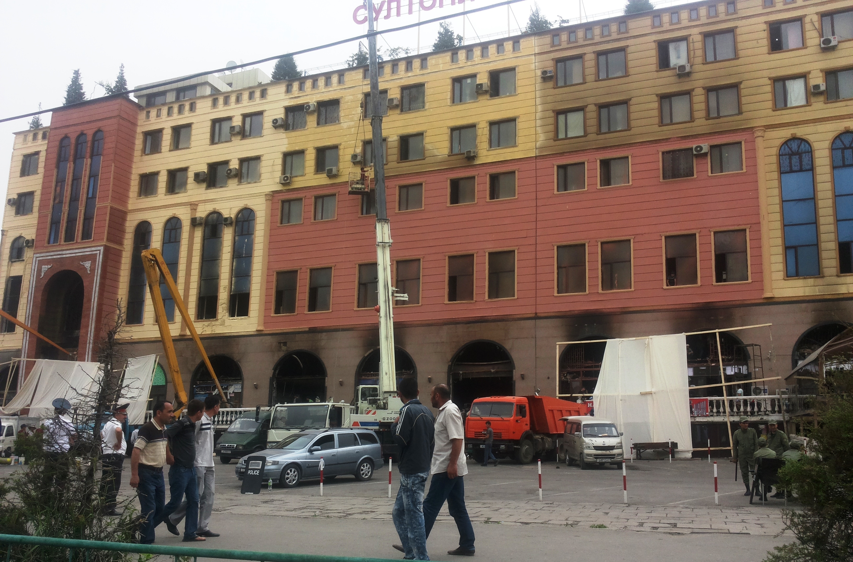 Сегодня с раннего утра в основном корпусе рынка «Султони Кабир» предприниматели занимались вывозом уцелевших товаров. Милиция и сотрудники ОМОН, окружившие здание, не пускали прохожих к рынку.