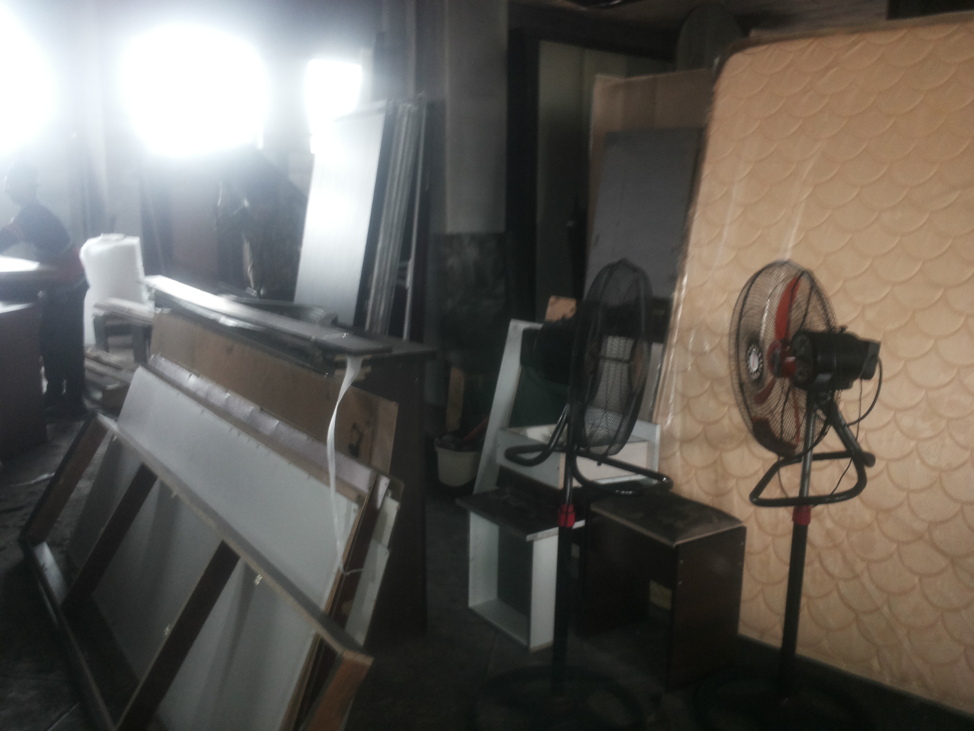 Картина, как на первом, так и на втором этажах – не веселая. Везде густой осадок от дыма недавнего пожара: кругом все черное – стены, полы, потолки, товары.