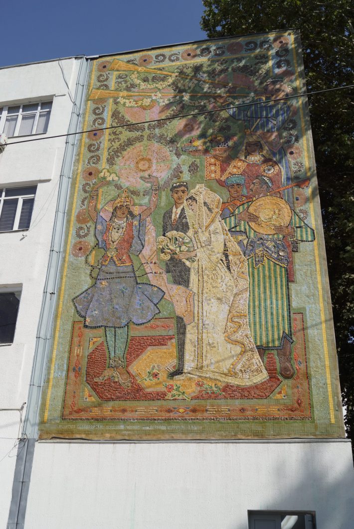 В советское время настоящее и будущее Таджикской Советской Социалистической Республики прославлялись в мозаике. Разноцветные кусочки витража с вкраплениями из горных камней, символизирующие сосуществование советских идей с местной культурой, можно было увидеть даже в отдаленных уголках страны.