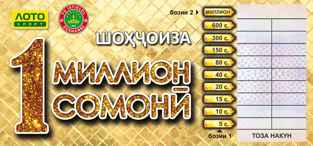 Компания «Лото Спорт» работает на лотерейном рынке Таджикистана с 2004 года и выплатила выигрышей на сумму более 200 миллионов сомони.