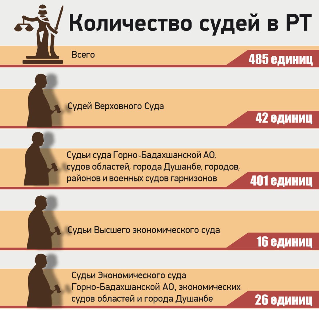 Многие судьи не получают даже тех льгот, которые предусмотрены законом, а получаемая ими заработная плата никак не отвечает их статусу. В Душанбе, к примеру, зарплата судьи районного суда составляет от 1400 до 2 тыс. сомони (около 160 $), что, конечно же, не соответствует статусу судьи.