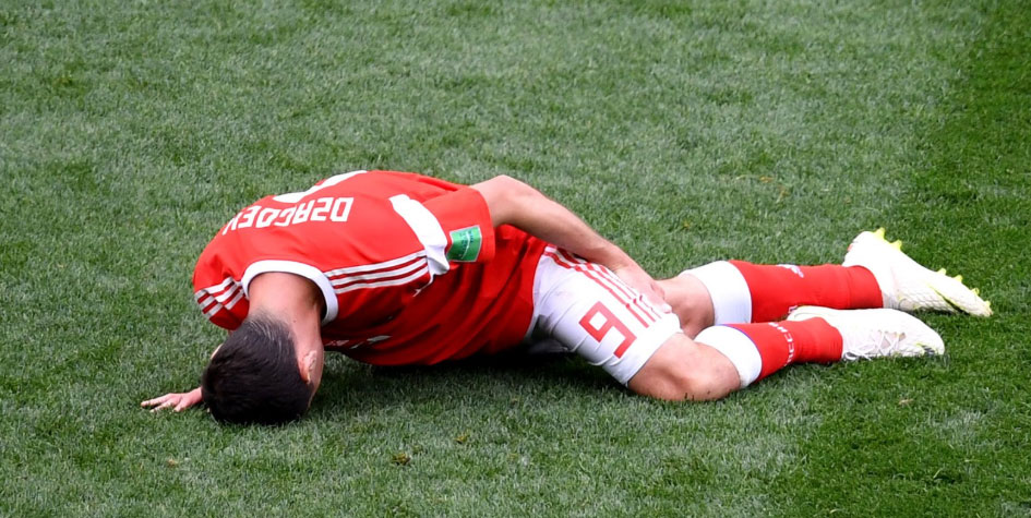 Спустя 10 минут сборная России потеряла одного из основных игроков полузащиты — травму получил Алан Дзагоев. В контратаке он совершил рывок и тут же упал на газон. Врачи сборной России сразу показали, что Дзагоев надорвал заднюю поверхность бедра и продолжать матч не может. Пока неизвестно, на какой срок выбыл полузащитник, однако, как правило, такая травма требует нескольких недель лечения.