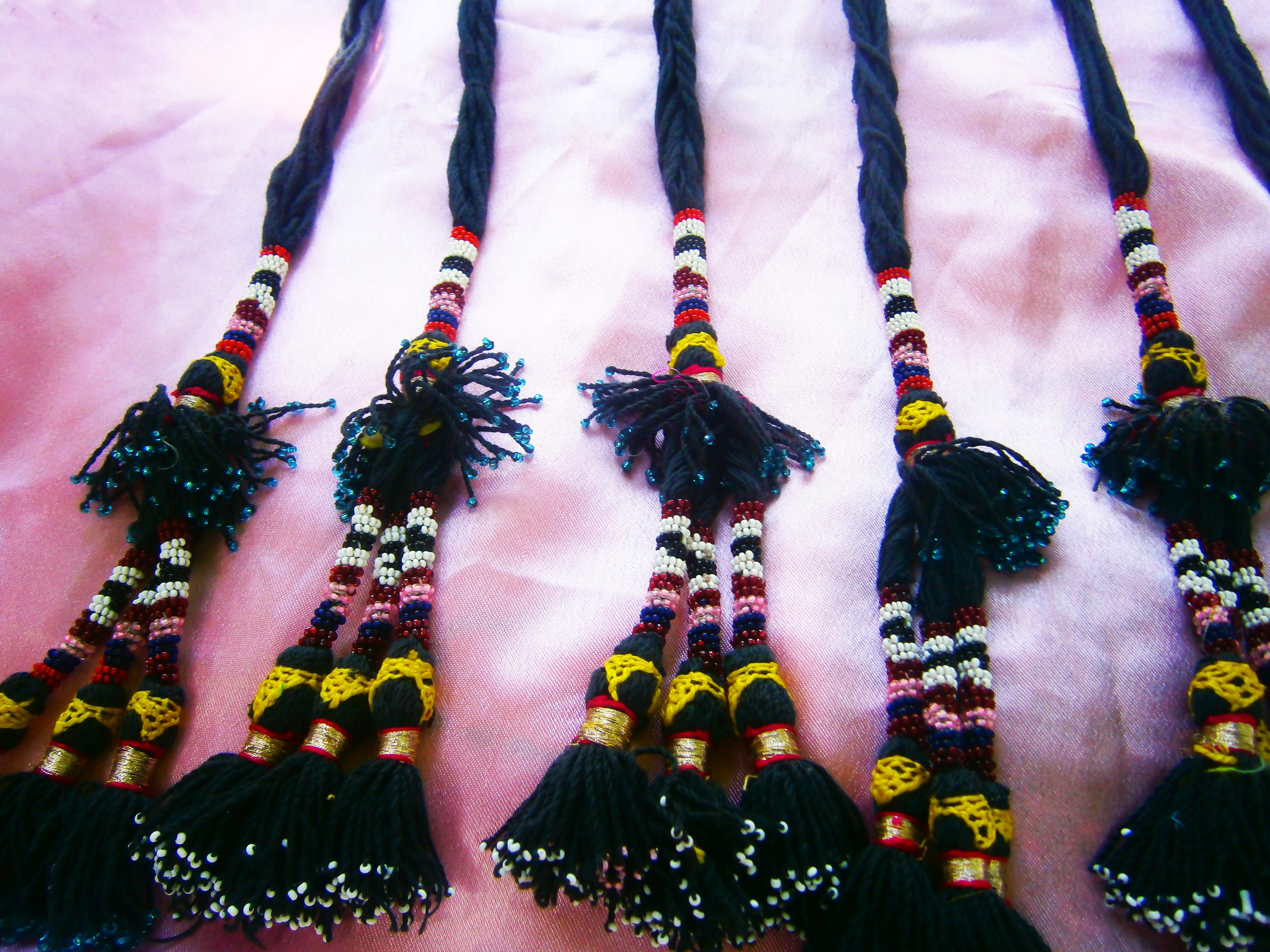 Национальная прическа таджичек имела два варианта: просто сорок косичек или с добавлением кокулов с середины косички – специального плетения из меланжевой нити и бисера.