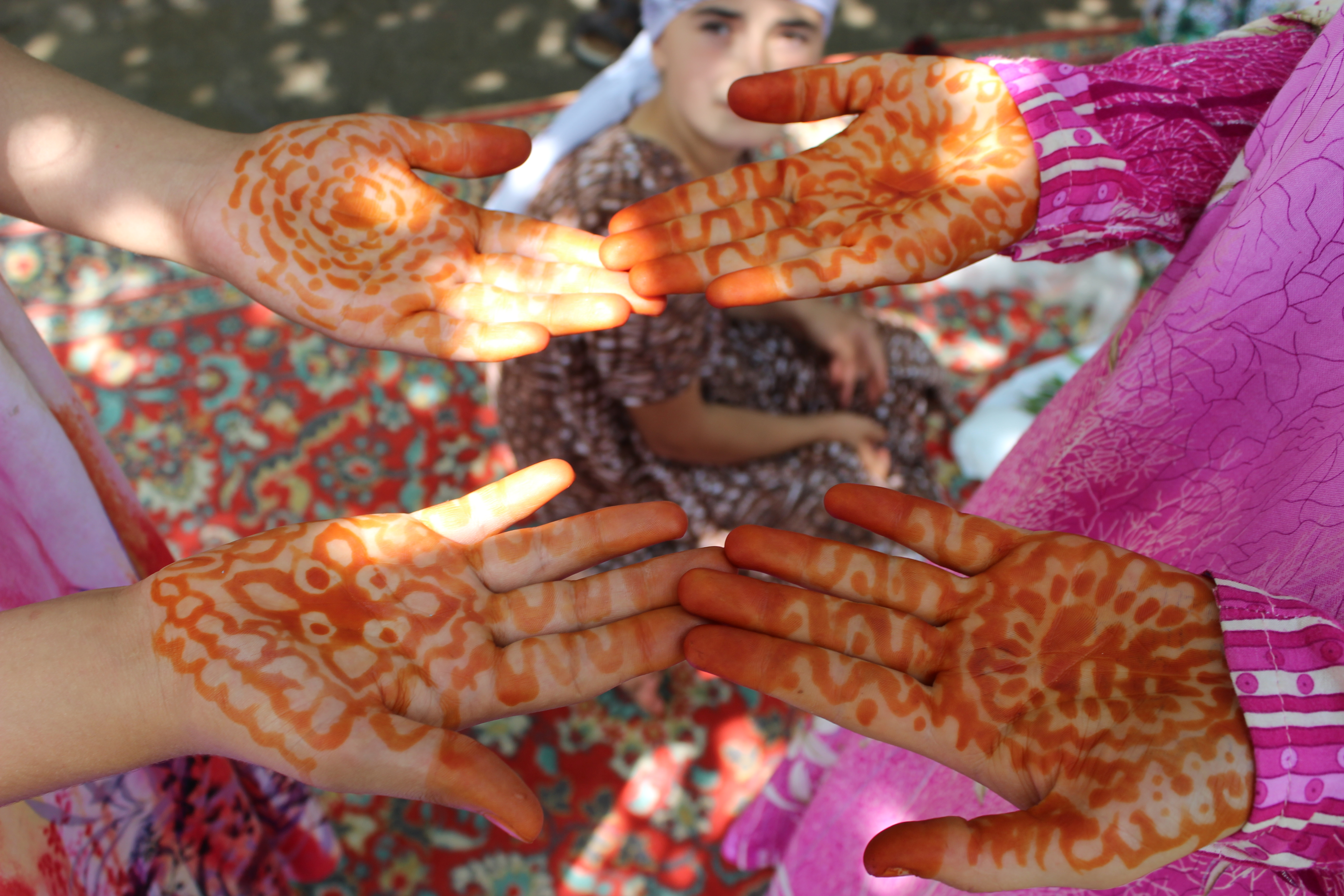 Также у таджиков имелась традиция хинобандон, когда перед свадьбой невеста проходила обряд окрашивания волос, ступней ног, ногтей и ладоней хной. Более того, нередко руки и ноги таджикской невесты украшались временной татуировкой – «менди», ажурными узорами из хны, наносимыми тонкой кисточкой. Считалось, что «менди» приносит счастье и защищает от неудач.