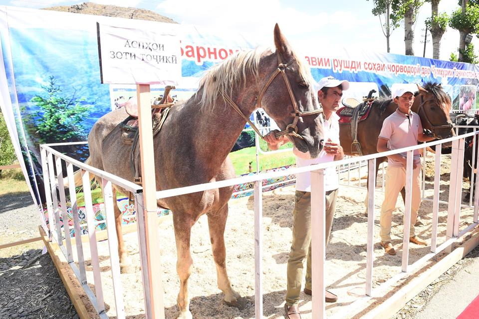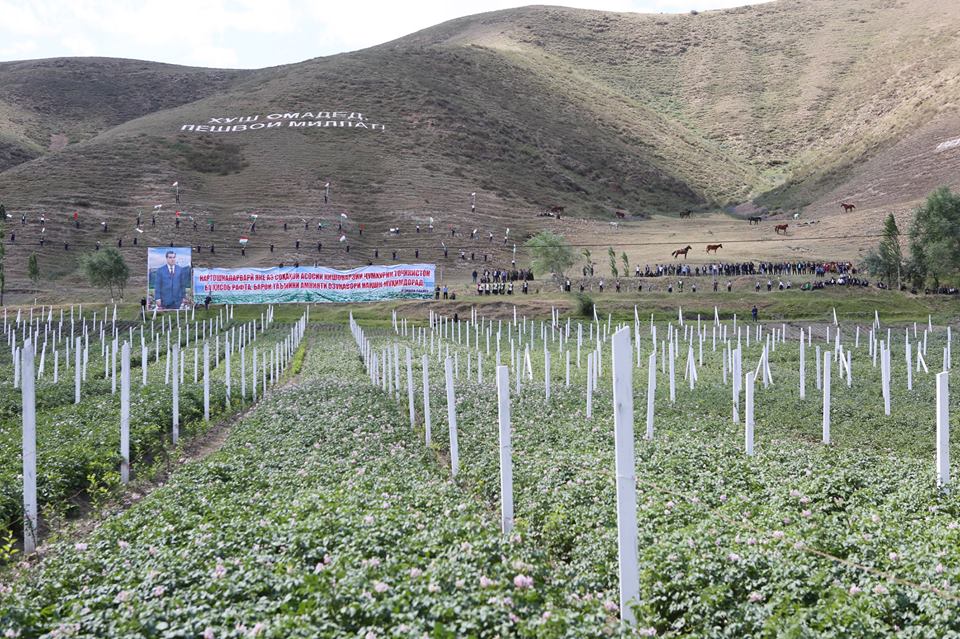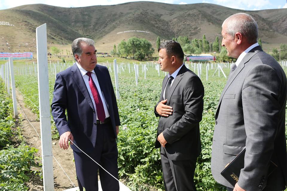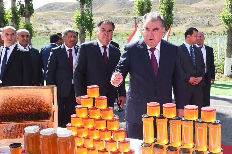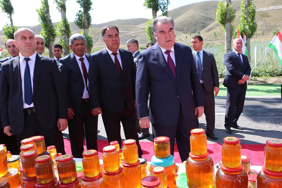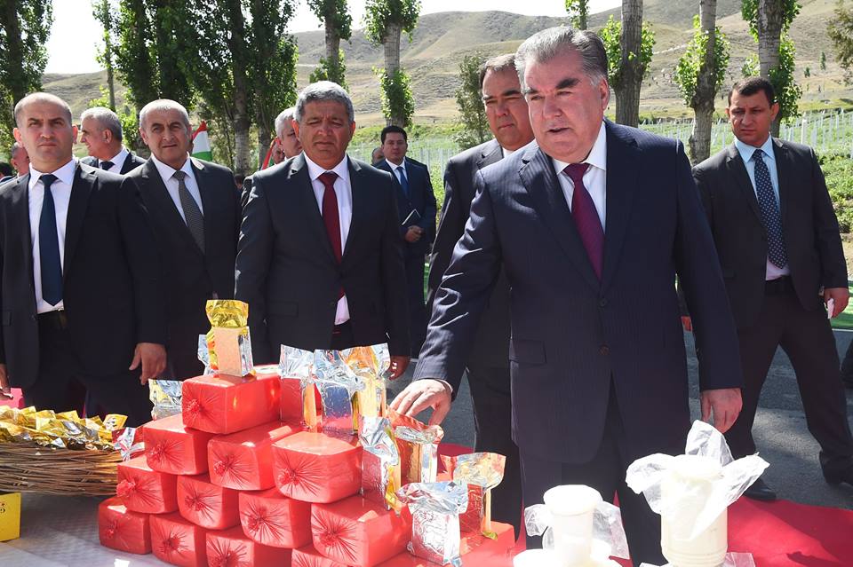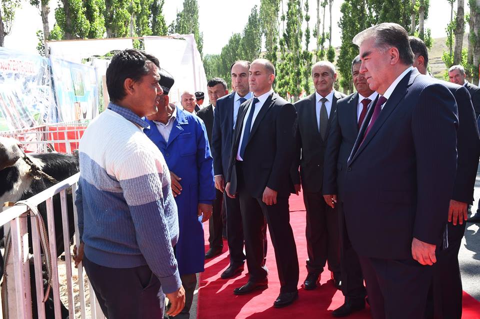 Президент, который утром дал старт строительству в Айнинском районе очередного предприятия "ТАЛКО", посетил после этого Шахристан. Здесь для него приготовили выставку сельскохозяйственной продукции и концерт.