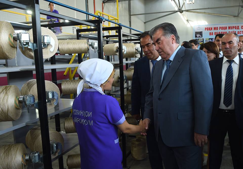В рамках своей рабочей поездки по районам и городам Согда президент Таджикистана Эмомали Рахмон сегодня утром посетил город Гулистон, где запустил новую технологическую линию по производству пряжи в ОАО «Ковры Кайраккума».