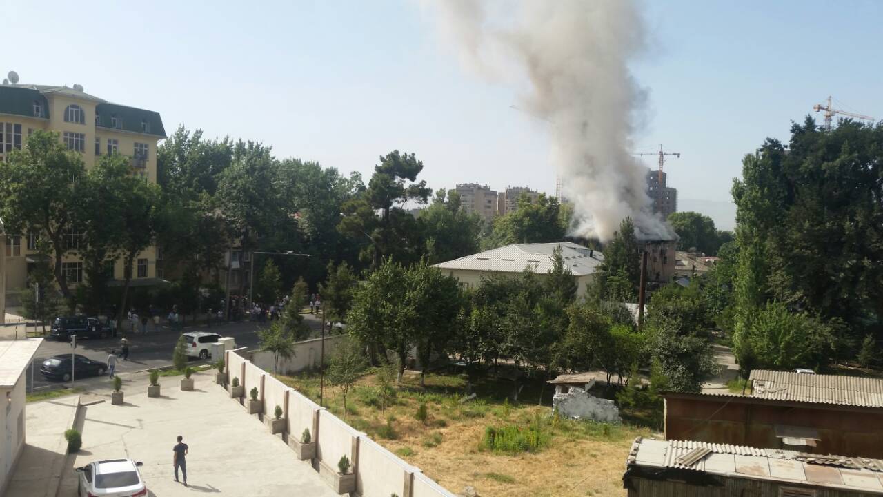 Сегодня утром в Душанбе загорелся двухэтажный ресторан "Шукрона", расположенный в районе поворота на аэропорт. В эти минуты огнем охвачена крыша здания, валит густой дым, на месте работают пожарные расчеты.