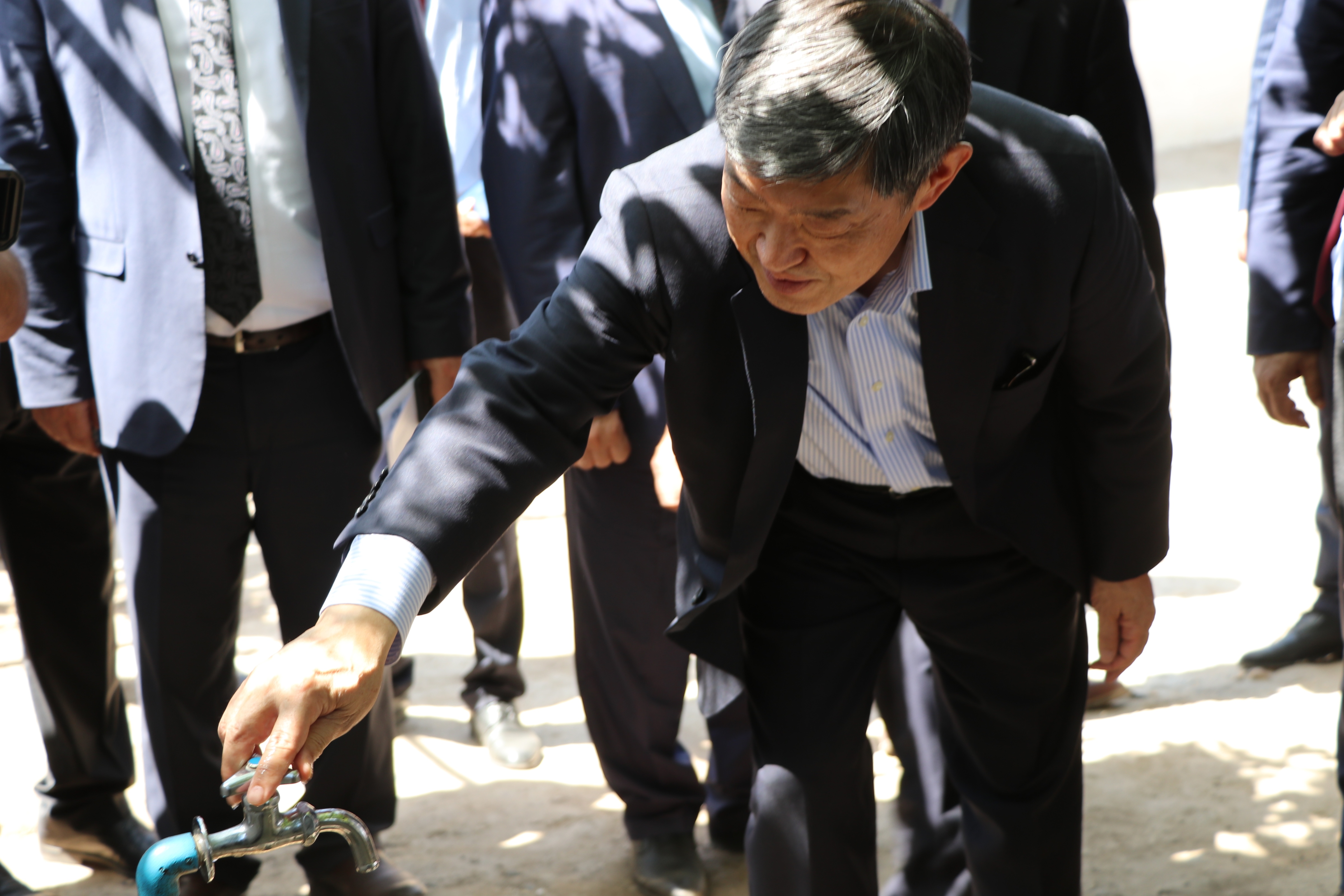 Президент JICA ознакомился с построенными сооружениями, в частности водонапорной башней емкостью 1800 кубометров воды, системой очистки воды, счетчиками потребления воды и водопроводными кранами, изготовленными в Японии, что позволило обеспечить питьевой водой около 29 тысяч человек в Пянджском районе круглосуточно.
