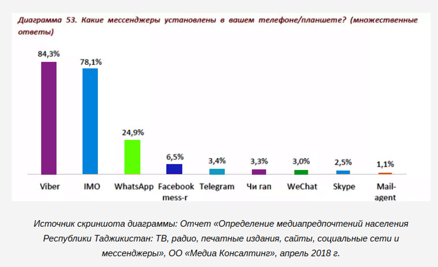 Что касается выбора платформы, то в «ИМОН ИНТЕРННЕШНЛ» оценили безопасность и популярность мессенджеров и пришли к мнению, что в Таджикистане самым популярным мессенджером является Viber.